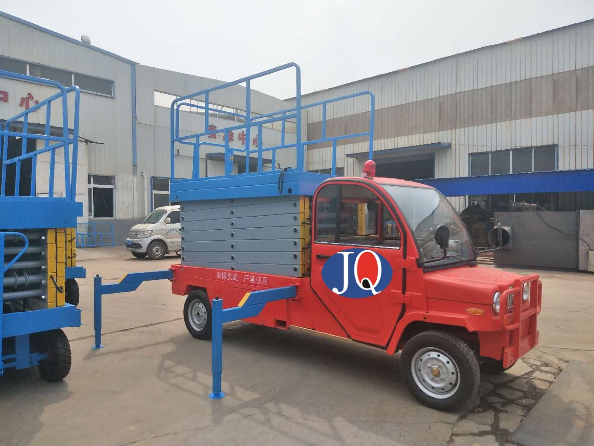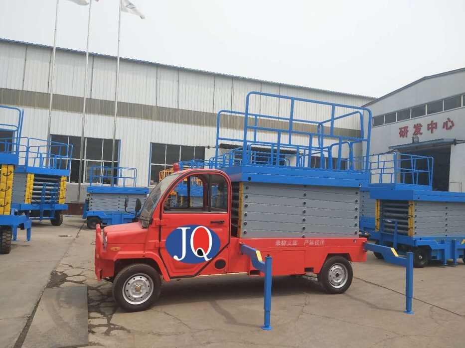 4、采用汽車、三輪車或電瓶車底盤做平臺(tái)底架,利用本車發(fā)動(dòng)機(jī)或直流電做動(dòng)力,既可行駛又可驅(qū)動(dòng)平臺(tái)升降。
