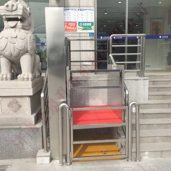 無(wú)障礙殘疾人升降平臺(tái)由升降平臺(tái)、導(dǎo)軌和驅(qū)動(dòng)箱等三大部分組成;升降平臺(tái)是由C型鋼材為主體部件,采用“翹板自復(fù)位開關(guān)操作運(yùn)行”, 無(wú)基坑式安裝,直接固定于混凝土地面(無(wú)底坑室外應(yīng)用情況下,平臺(tái)下方混凝土地面不得低于周圍地面) ,手動(dòng)液壓閥打開時(shí)升降底板能手動(dòng)下降;液壓驅(qū)動(dòng),升降平穩(wěn)安全,外部采用拉絲不銹鋼材料和鋁板靜電噴塑機(jī)箱/面板,外形小巧美觀,不阻礙周邊環(huán)境。殘疾人升降機(jī)直接安裝于地面,無(wú)需土建配套地坑,施工簡(jiǎn)便,產(chǎn)品放置戶外不易積水,不易生銹,維護(hù)簡(jiǎn)便,升降高度可達(dá)8米。