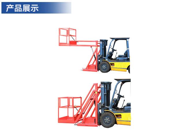 ▲叉車電動載人平臺與叉車連接使用三保險(xiǎn),兩個(gè)插銷固定,兩個(gè)鏈條鏈接,四個(gè)固定T型螺栓在叉車支腿上,確保安全可靠。