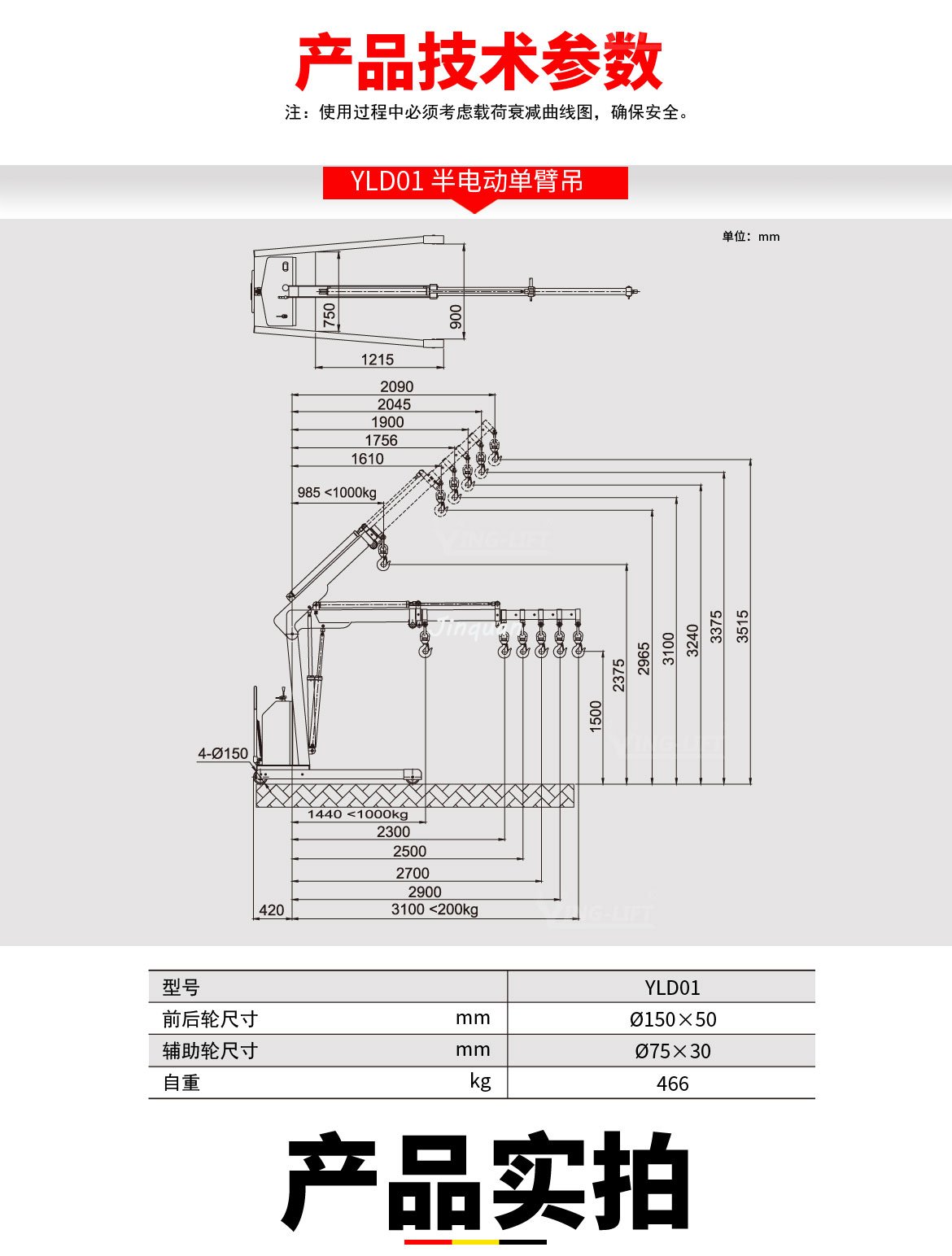 注:使用過(guò)程中必須考慮載荷衰減曲線圖,確保安全。