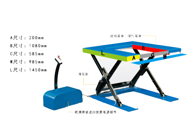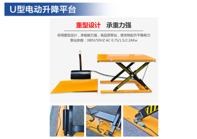 ▲ U型臺(tái)面,重型設(shè)計(jì)帶超長(zhǎng)臺(tái)面,專用于托盤搬運(yùn),超低型臺(tái)面,不再需要建地下凹坑來(lái)安裝;