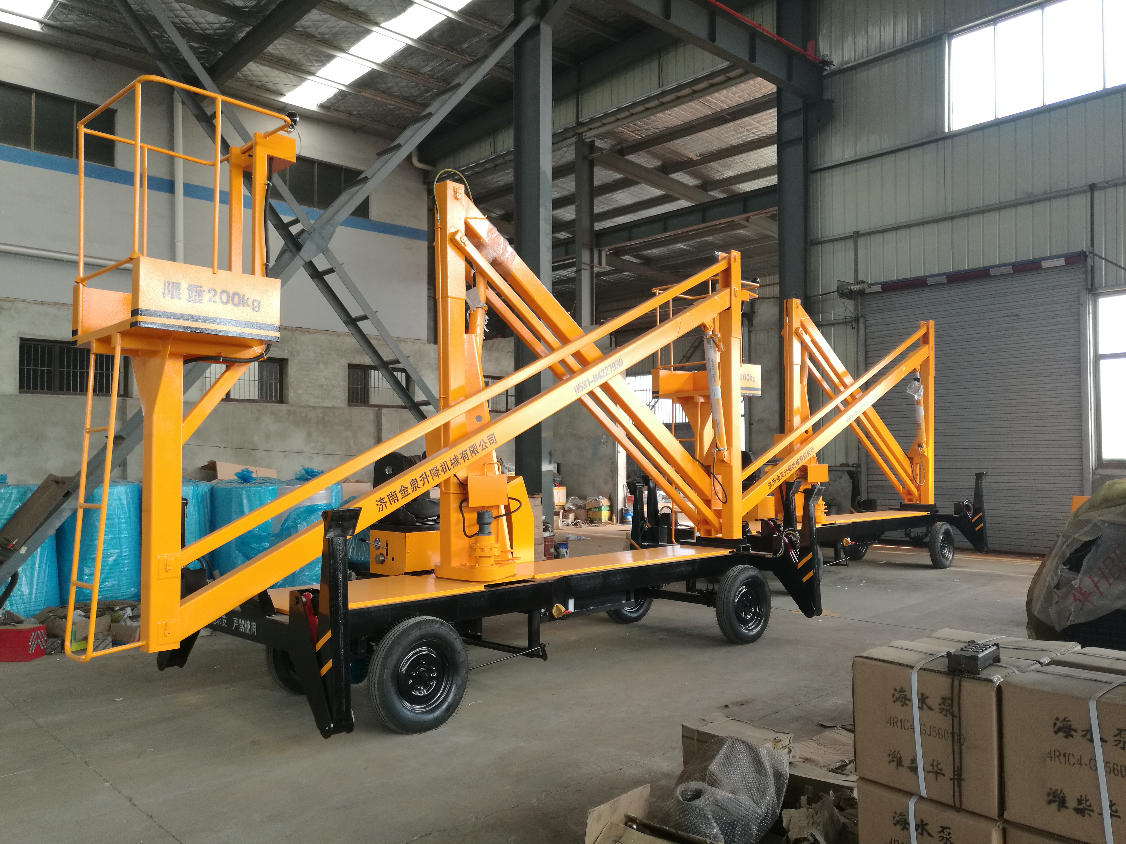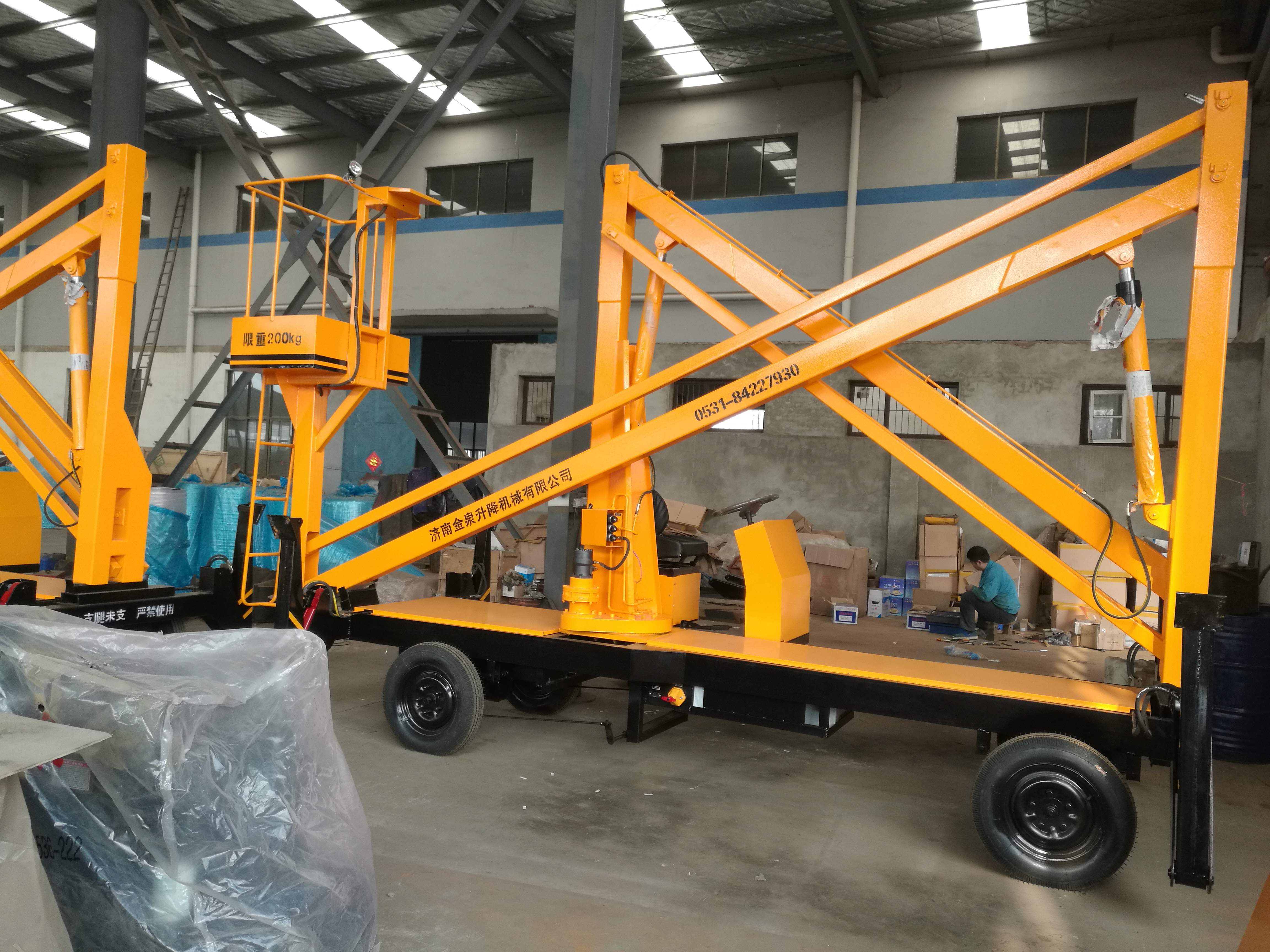 8、旋轉工作時,首先要將折臂提升到90°后方能旋轉工作,旋轉時按動控制按鈕左旋、右旋工作,下降時要注意,將折臂旋轉到水平位置后方能下降落位,工作時折臂下嚴禁站人。